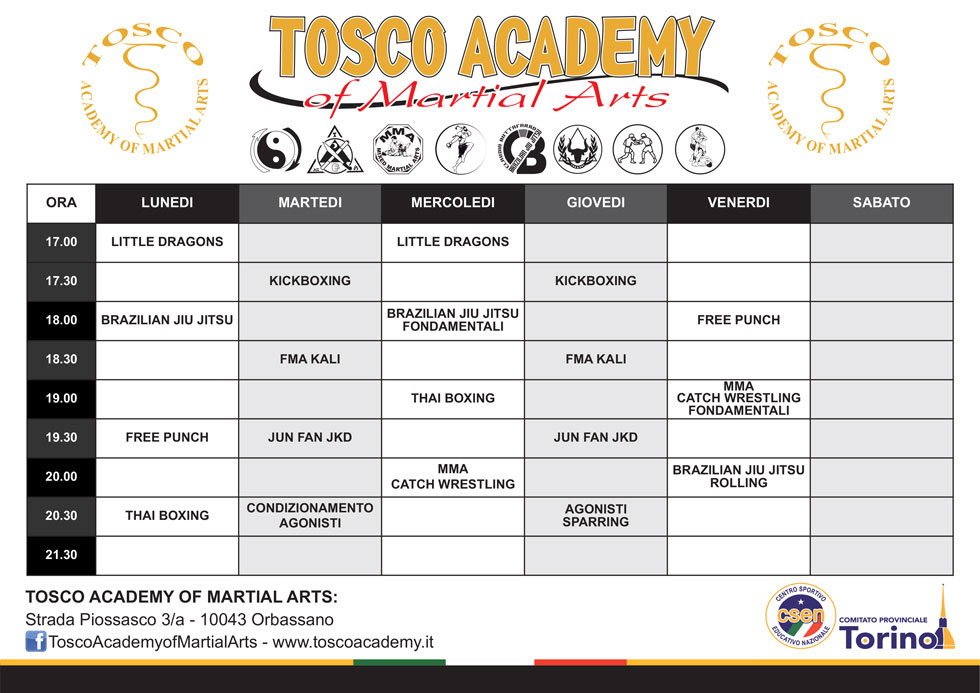 N.B. Gli orari delle lezioni potrebbero subire variazioni, senza alcun obbligo di preavviso, chiedere sempre conferma in segreteria.